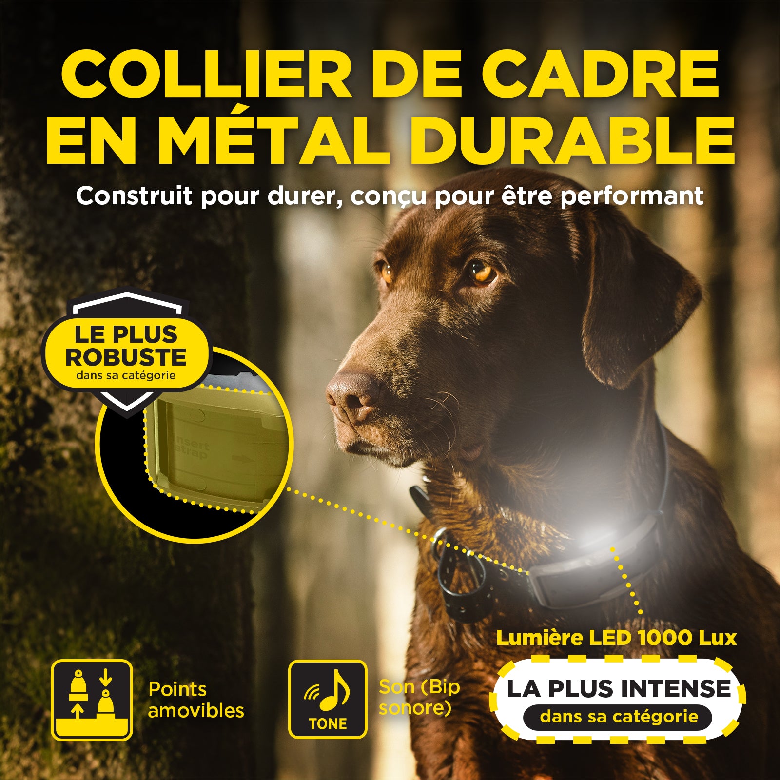 - Lumière LED blanche sur le collier