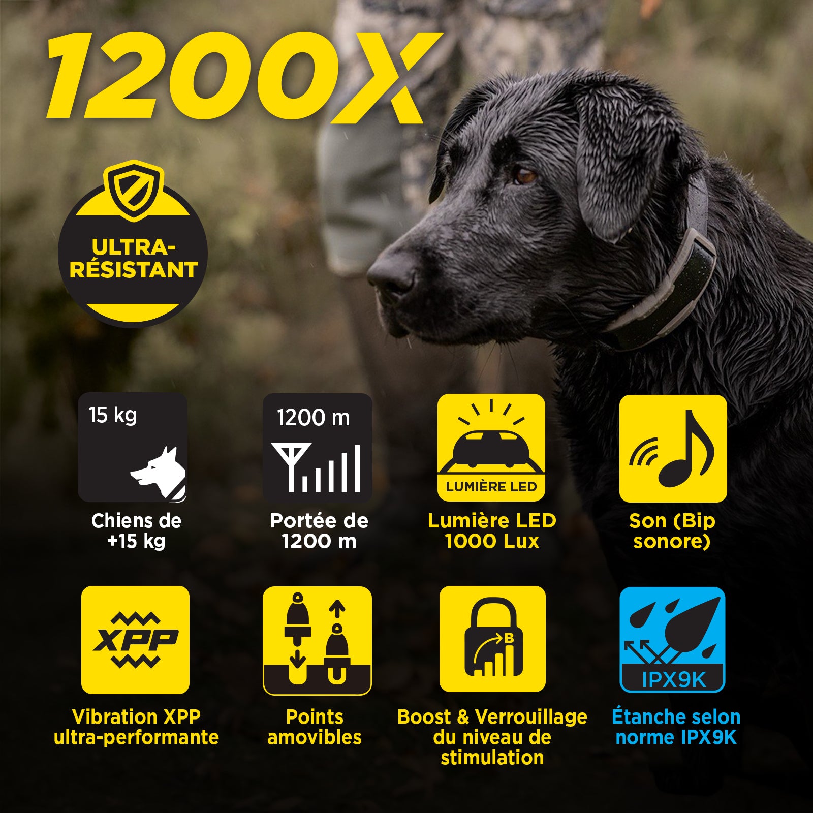 La visibilité est cruciale, surtout dans des conditions de faible luminosité ou dans un couvert dense. Notre lampe intégrée au collier électronique permet de garder votre chien visible, tandis que le verrouillage du niveau de sécurité empêche tout changement accidentel pendant les moments critiques d’entraînement ou de chasse.